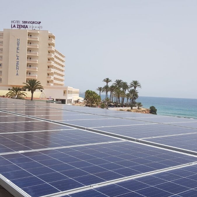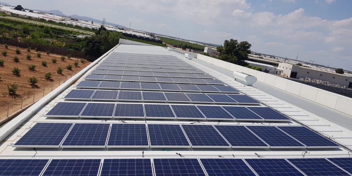 Instalación fotovoltaica AUTOCONSUMO suministro directo sin baterías compuesta por 124 Paneles solares Solarwatt de alto rendimiento de 270 Wp., orientadas al SUR , instalados sobre cubierta inclinada, con una potencia total de 33,5 kW/h de campo solar, con inversor Trifásico 380 v. Básicamente aporta el consumo electrico de las camaras frigoríficas durante las horas de radiación solar.